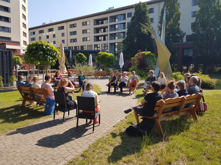 Wir überlegen, wie können wir zum Beispiel im Team Weiterbildung anders gestalten, weil wir das jetzt vielleicht so kennengelernt haben und das super finden, dass man sich nicht nur in der Schule trifft und irgendwas bespricht, sondern dass man vielleicht bewusst aus dem Umfeld Schule rausgeht, irgendwo sich hin begibt, wo man dann nicht nur sitzt und lernt, sondern auch mal als Team wieder gemeinsam etwas erlebt. Und ich denke…also ich glaube, unsere Kollegen spüren das auch, dass das für uns halt schon was Anderes ist und wir mal raus sind aus diesem Trott. Und dann kommen wir mit ganz vielen neuen Ideen zurück und bringen neuen Input mit, was ja die Schule und dadurch auch die Kollegen einfach weiterbringt und von daher, kann ich mir das auch gut für unser Team vorstellen, dass wir sowas einfach mal organisieren mit einem Besuch im Dom oder in welcher Kirche auch immer. Elisabeth Lauterbach, Hortleiterin Ev. Grundschule Halle (Saale)
